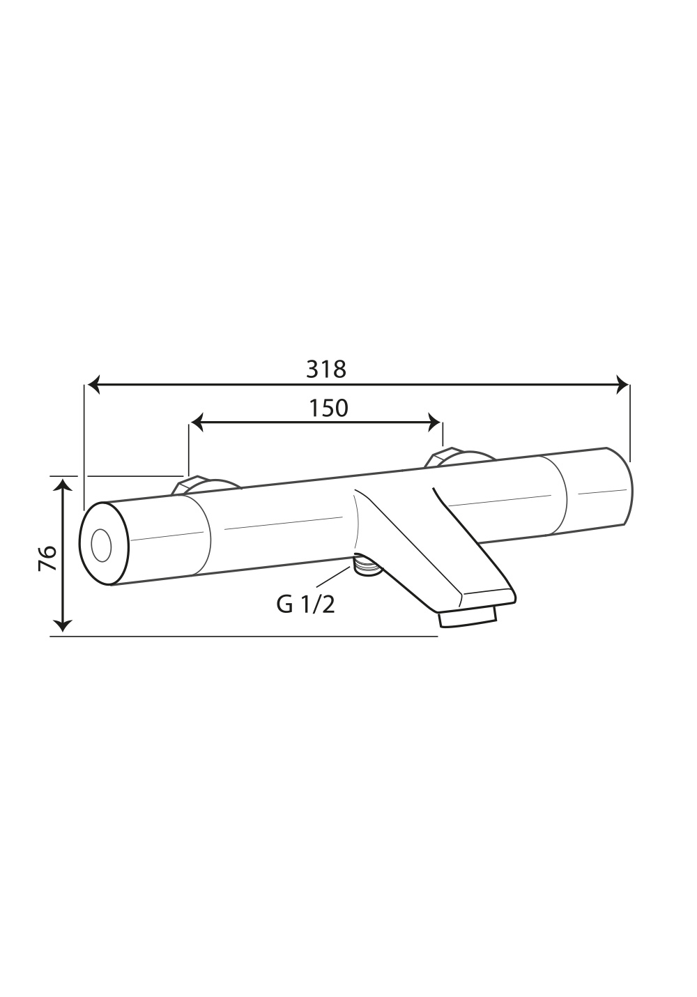 Suihkutermostaatti juoksuputkella. Ainutlaatuisen rakeenteensa ansiosta pinta ei kuumene yli 38°. Termostaatilla turvarajoituksella. L 305 mm ja korkeus 40 mm.