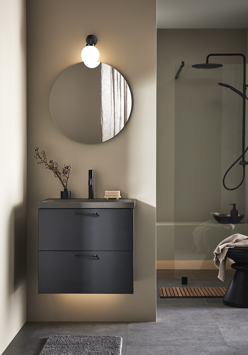 Pesuallaskaappi Shape Antracit 600 + Pesuallas Betonia