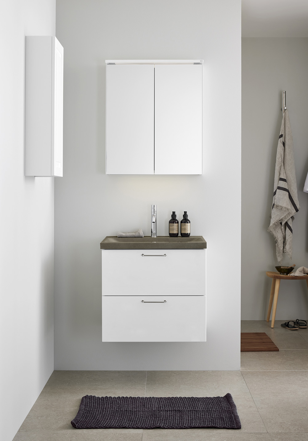 Pesuallaskaappi Shape Valkoinen 600 + Pesuallas Betonia