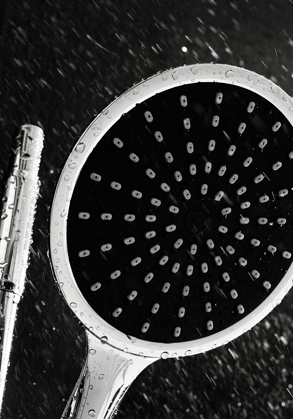 Antitwist musta suihkuletku ja iso kahva, läpimitta 170 mm.