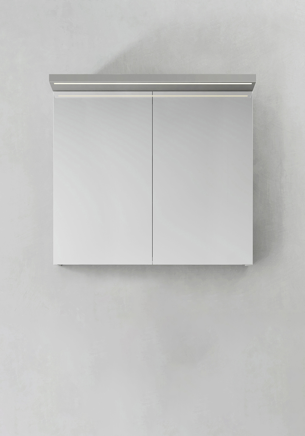Peilikaappi, jossa käytännöllinen valaistus upotetulla LED-profiililla tai lämpimän valkoisella LED-kohdevalaisimilla. Pehmeästi sulkeutuvat molemminpuoliset peiliovet. Pistorasia sisällä oikealla puolella ja irrotettavat lasihyllyt hyllynkannattimilla, jotka lukitsevat ne varmasti paikoilleen. Helppo asentaa yksin kokonaisella kiinnityskiskolla ja säädettävillä ripustusheloilla. Valmisteltu helppoa sähköasennusta varten. IP44.