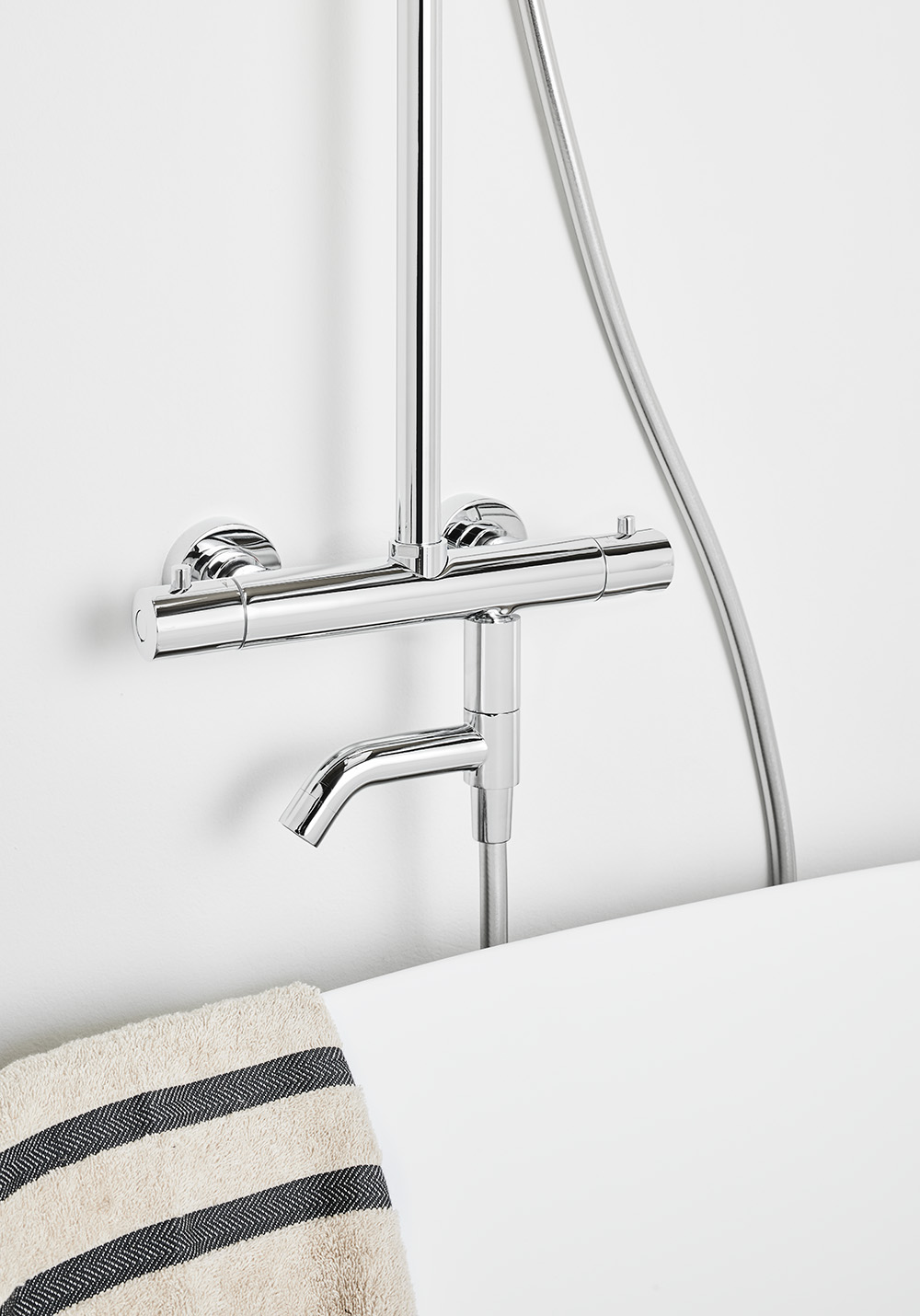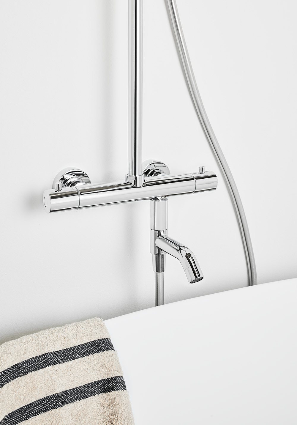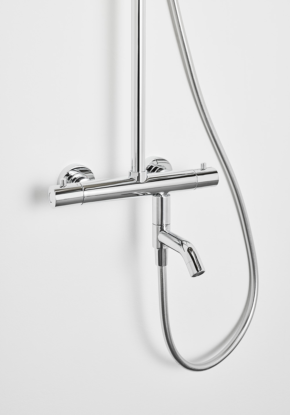 Add juoksuputken avulla saat tavalliseen suihkuhanaan käytännöllisen juoksuputken, jonka sisäänrakennettu ohjaa veden kätevästi juoksuputken ja käsisuihkun välillä. Juoksuputki on käännettävissä sivuun silloin kun sitä ei käytetä. Käytännöllinen, kun haluat hakea saunaan löylyvettä tai haluat juoksuputken pois tieltäsi kylpiessäsi. Väreinä kromi ja matta musta.