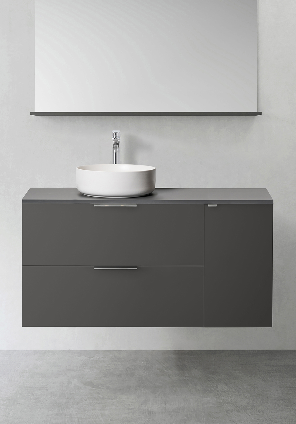 Pehmeästi sulkeutuviin laatikoihin on helppo pääsy kokonaan aukeavuuden vuoksi. Laatikkomatot ja bambu sisustus pitää pikkutavarat järjestyksessä. Pienessä kaapissa on irrotettava hylly. Moduuli ja moduulin ovi voidaan asentaa oikealle tai vasemmalle puolelle. Kaluste toimitetaan koottuna ja asentaminen on helppoa säädettävän ripustinhelan avulla. Kaluste on mukautettu joko seinä- tai lattiaviemäröintiin. Valitse upotettava pöytälevylle asennettava malja-allas. Täydennä tyyliisi sopivalla vetimellä tai nupilla. Osta lisäksi allashana, pohjaventtiili, vesilukko, laatikonvalaistus ja pistorasia.