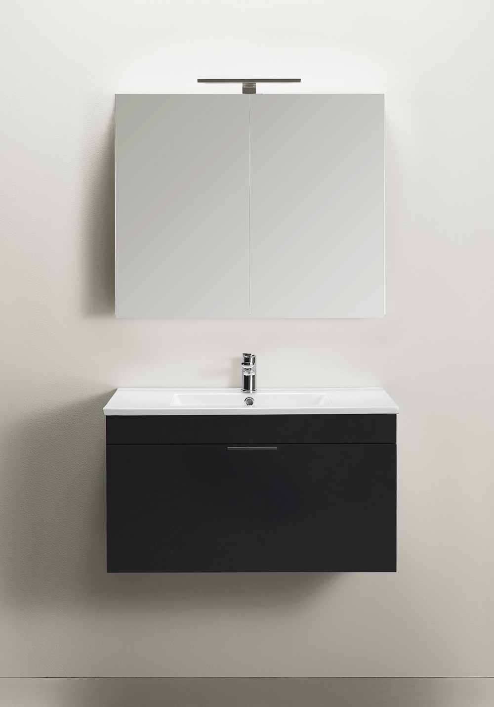 Pesuallaskaappi Go 1 Laatikko Pesualtaan Kanssa + Peilikaapilla Musta 800