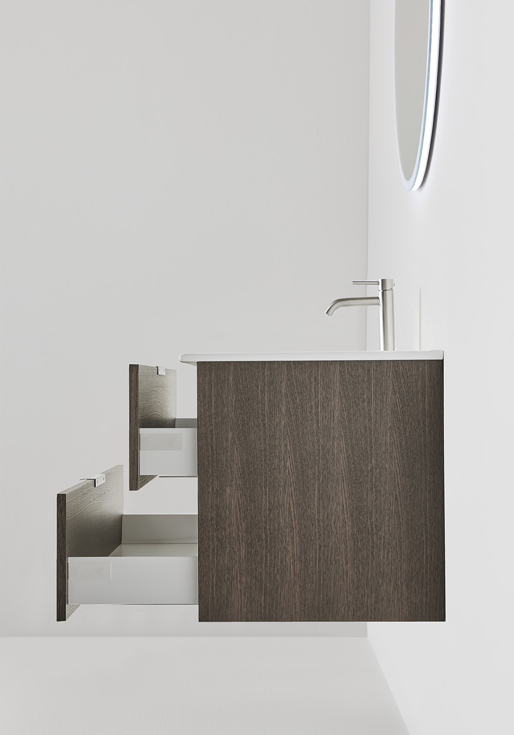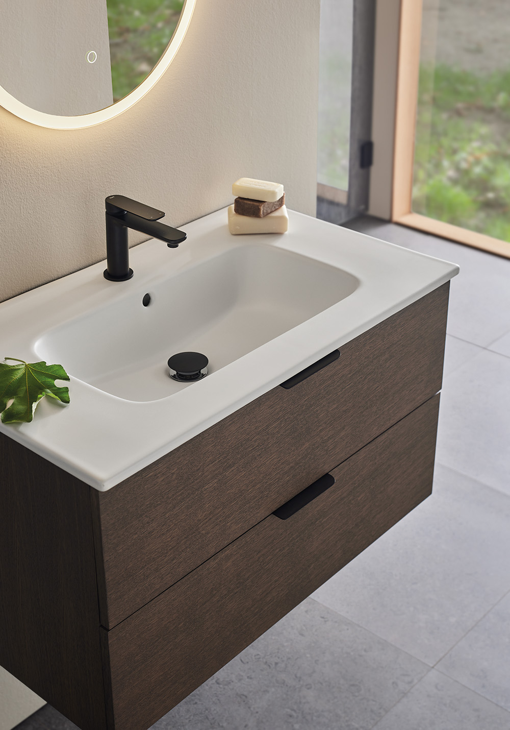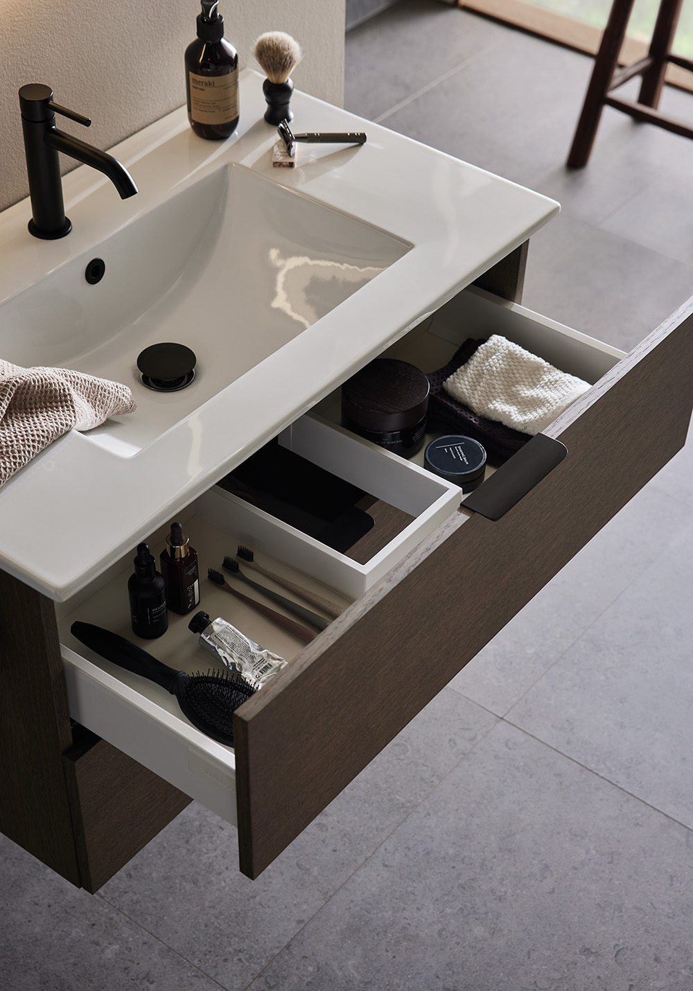 Hafa Go pesuallaskaappi on käytännöllinen ja tyylikäs kylpyhuonekaluste sileillä etulevyillä. Täydennä pesualtaalla ja lisää tyyliisi sopivat vetimet valikoimastamme. Kaksi pehmeästi sulkeutuvaa laatikkoa, joiden sisältöön on helppo päästä kokonaan aukenevien laatikoiden ansiosta.