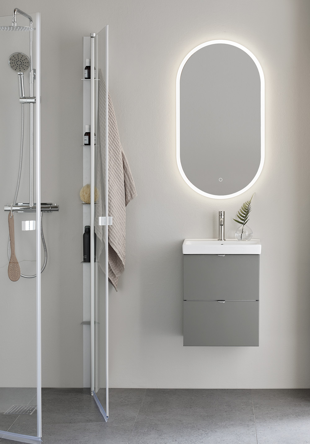 Hafa Neat on käytännöllinen siro pesuallaskaappi. Täydennä Hafa Neat posliini pesualtaalla. Kaapissa on pehmeästi sulkeutuva- toiminto ja asentaminen käy helposti seinäkiskon ja säädettävien ripustuksien ansiosta. Kaappi on valmisteltu seinä- tai lattiaviemäröinnille ja kaappi toimitetaan valmiiksi koottuna. Täydennä vetimillä, pohjaventtiilillä, ja vesilukolla. Suosittelemme tälle altaalle hanaa, jossa on virtausta säätelevä suutin.