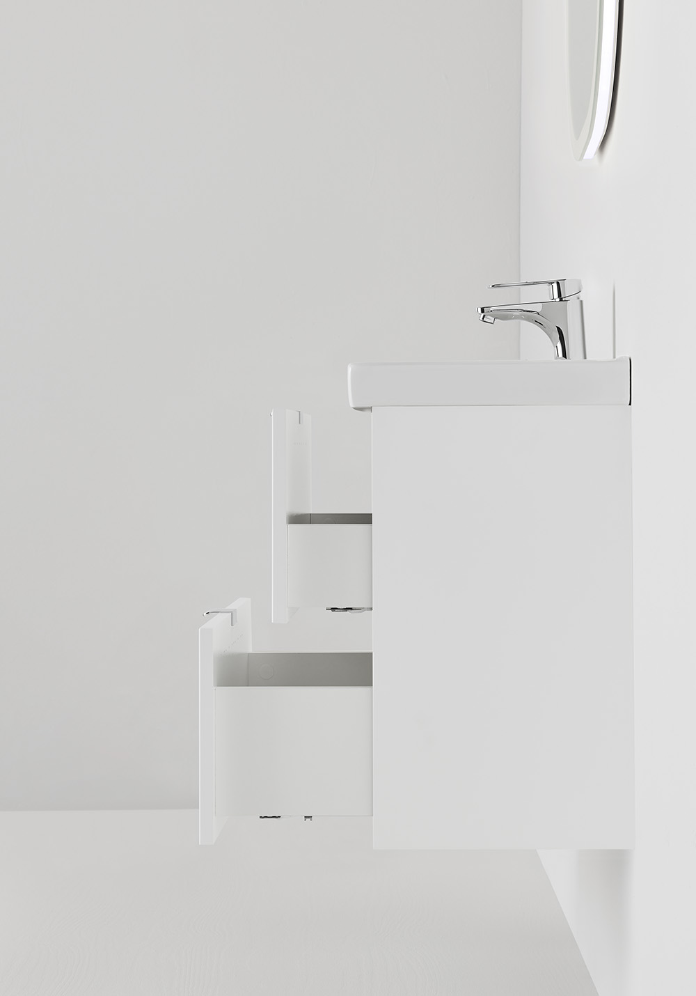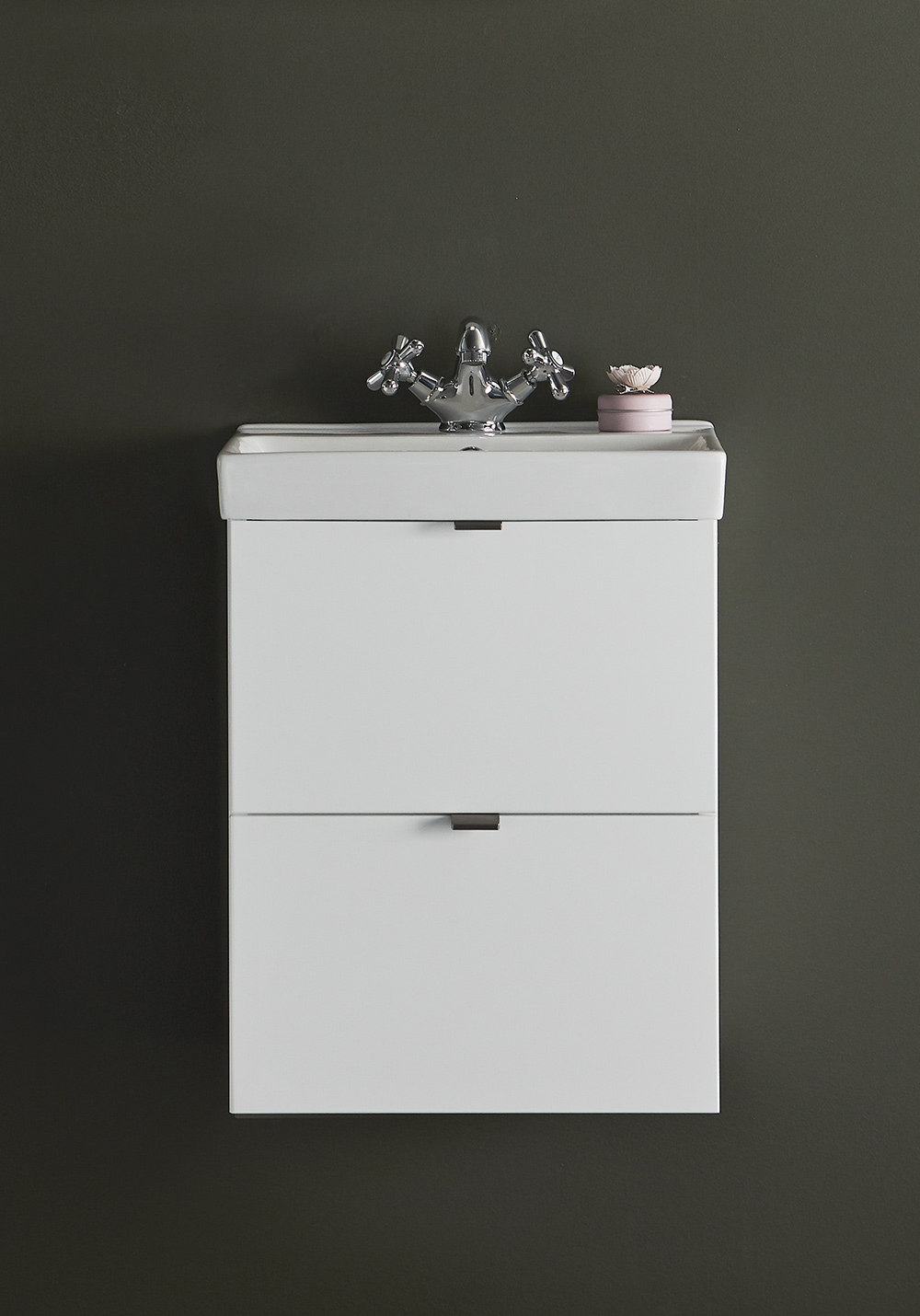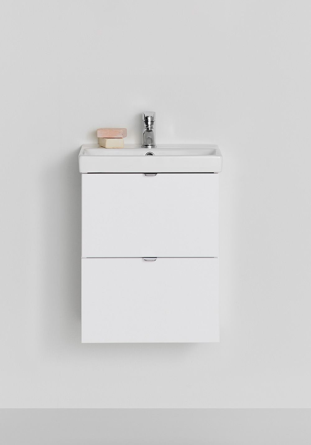 Hafa Neat on käytännöllinen siro pesuallaskaappi. Täydennä Hafa Neat posliini pesualtaalla. Kaapissa on pehmeästi sulkeutuva- toiminto ja asentaminen käy helposti seinäkiskon ja säädettävien ripustuksien ansiosta. Kaappi on valmisteltu seinä- tai lattiaviemäröinnille ja kaappi toimitetaan valmiiksi koottuna. Täydennä vetimillä, pohjaventtiilillä, ja vesilukolla. Suosittelemme tälle altaalle hanaa, jossa on virtausta säätelevä suutin.