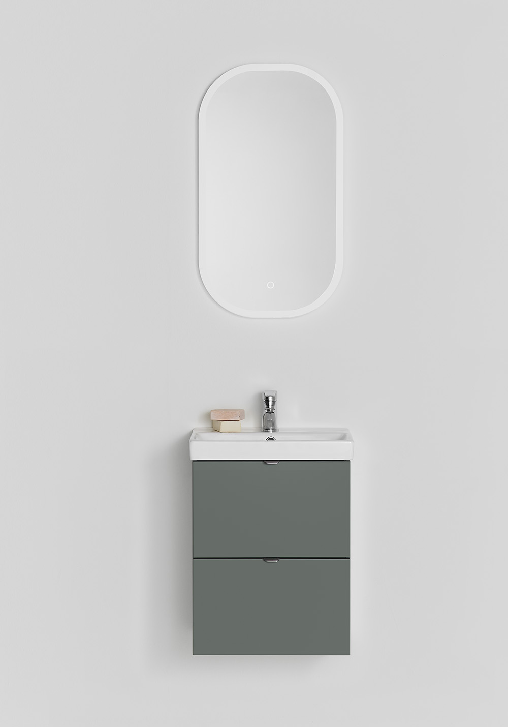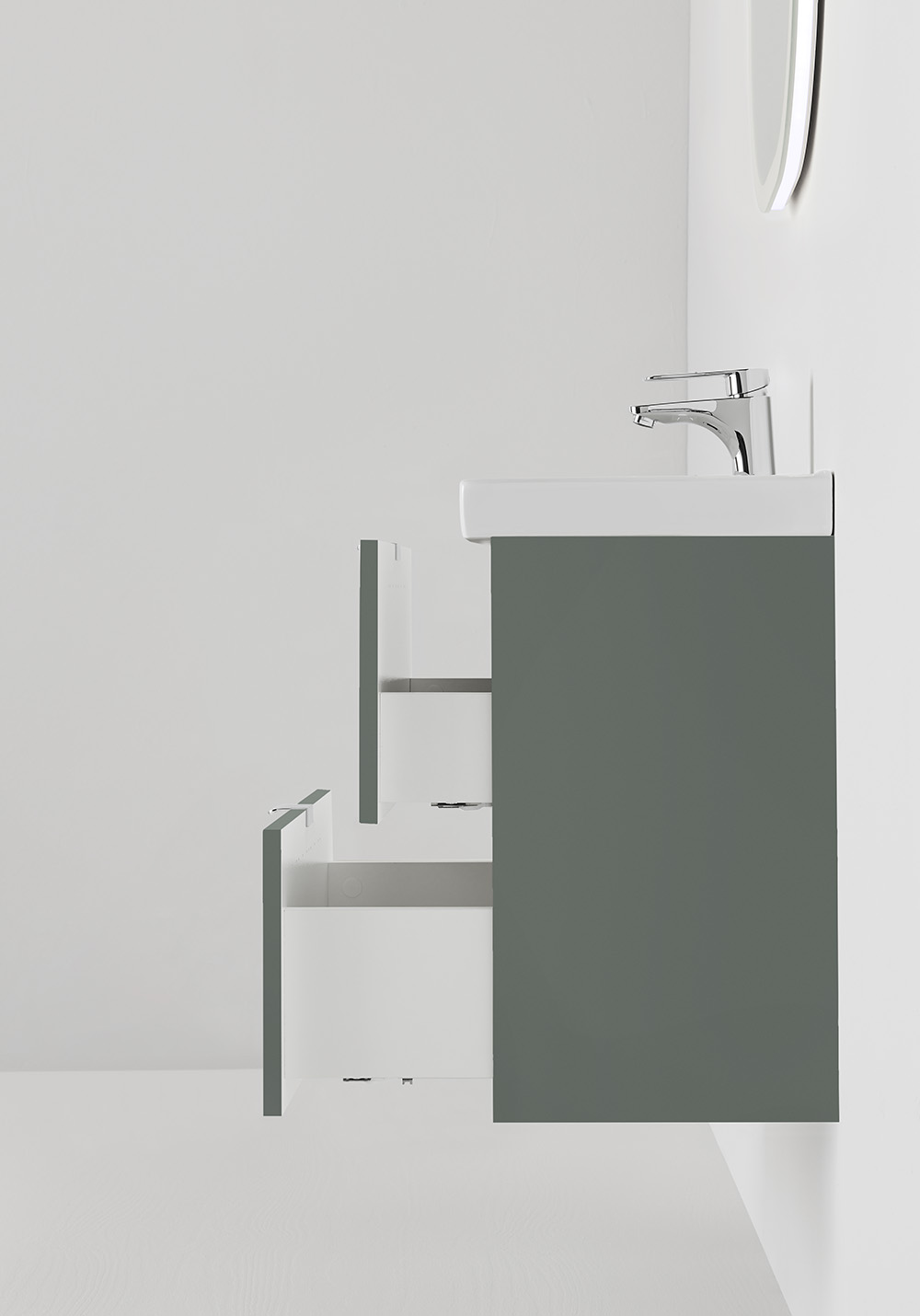 Hafa Neat on käytännöllinen siro pesuallaskaappi. Täydennä Hafa Neat posliini pesualtaalla. Kaapissa on pehmeästi sulkeutuva- toiminto ja asentaminen käy helposti seinäkiskon ja säädettävien ripustuksien ansiosta. Kaappi on valmisteltu seinä- tai lattiaviemäröinnille ja kaappi toimitetaan valmiiksi koottuna. Täydennä vetimillä, pohjaventtiilillä, ja vesilukolla. Suosittelemme tälle altaalle hanaa, jossa on virtausta säätelevä suutin.
