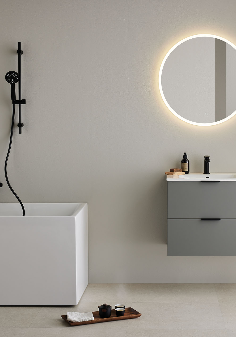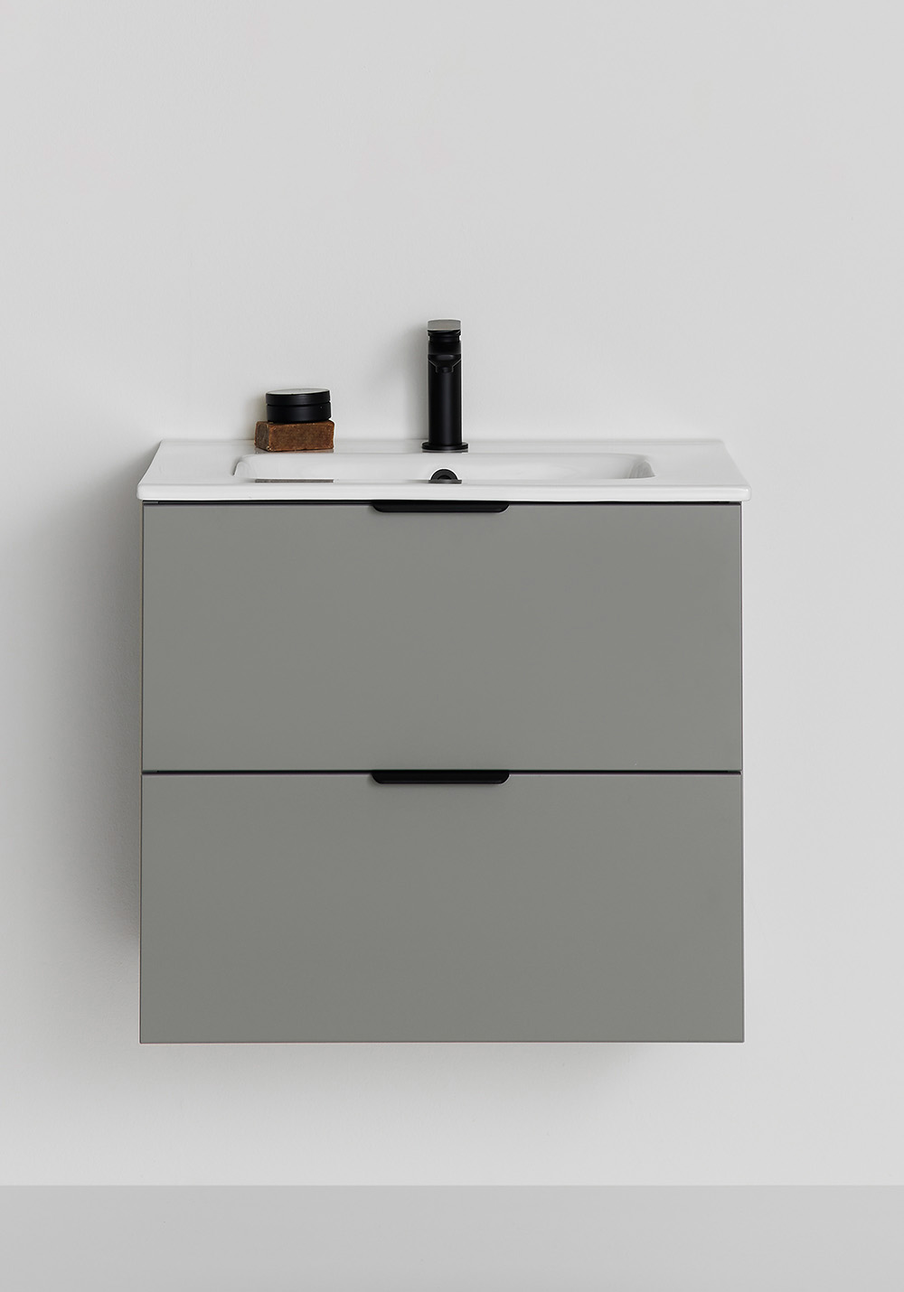 Pesuallaskaappi Hafa Storm, posliinisella pesualtaalla, jonka kauniin hillitty lämpimän harmaa väri yhdessä suoraviivaisen muotoilun kanssa antaa sinulle huonekalun, josta voit nauttia useita vuosia. Lisää tyyliisi sopivat kahvat tai nupit ja täydennä hanalla, pohjaventtiilillä ja vesilukolla.