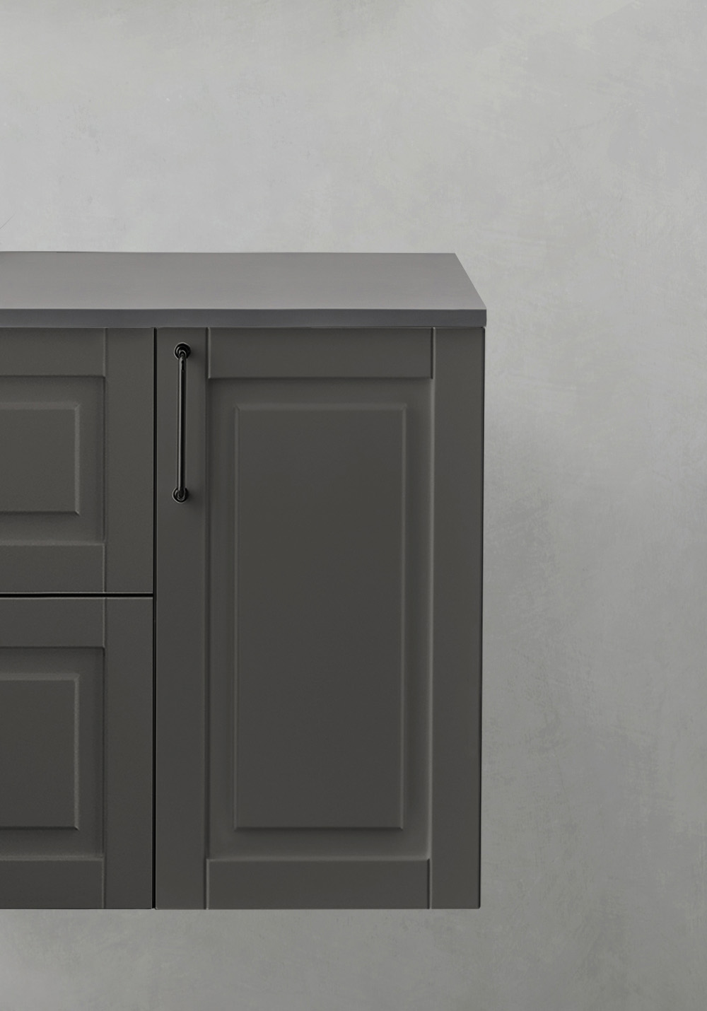 Hafa Grace on kylpyhuonekaluste, jonka kauniit profiloidut ovet on suunniteltu sopimaan niin maalaismaiseen kuin moderniinpaankin skandinaaviseen kylpyhuoneeseen. Yhdistämällä allaskaapin sivumoduulin saadaan lisäleveyksiä ja -vaihtoehtoja. Valitse joko pehmeästi sulkeutuva ovi tai push-open toiminnollinen ovi. Pehmeästi sulkeutuva ovi tarvitsee täydentää mieleiselläsi vetimellä tai nupilla. Kaapin sisällä siirrettävä hyllytaso.