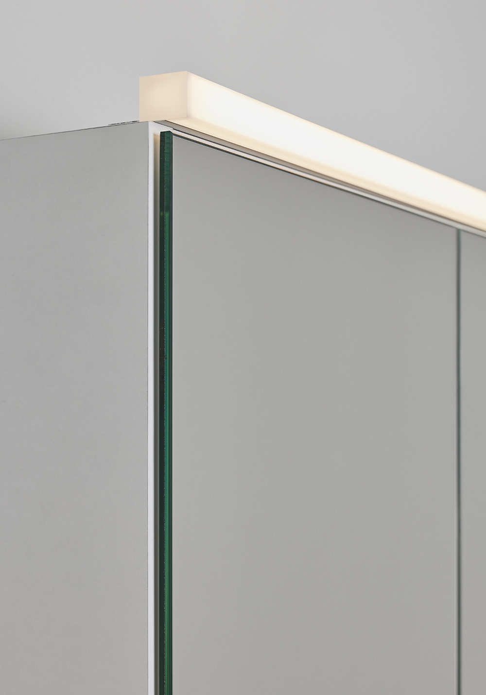Tyylikäs valaisinprofiili, joka valaisee tehokkaasti ylös-, eteen- ja alaspäin. Peilikaappi Hafa Go Basic on valmisteltu tämän valaisinprofiilin asennusta varten. IP44. Osta mukaan 15W muuntaja.
