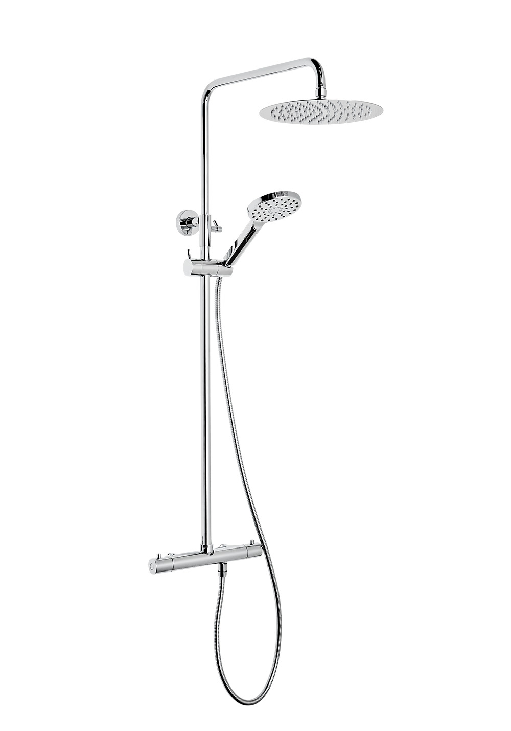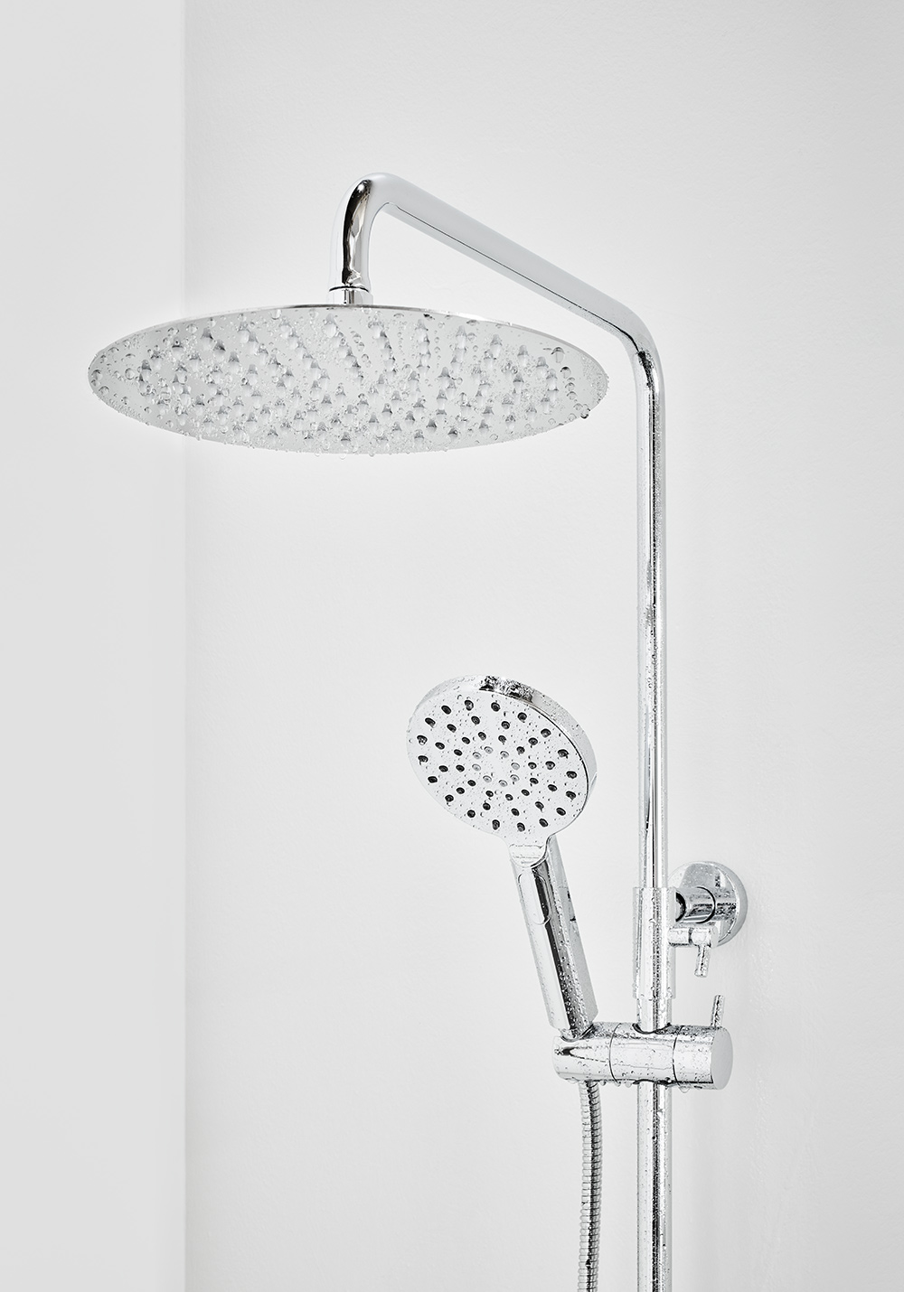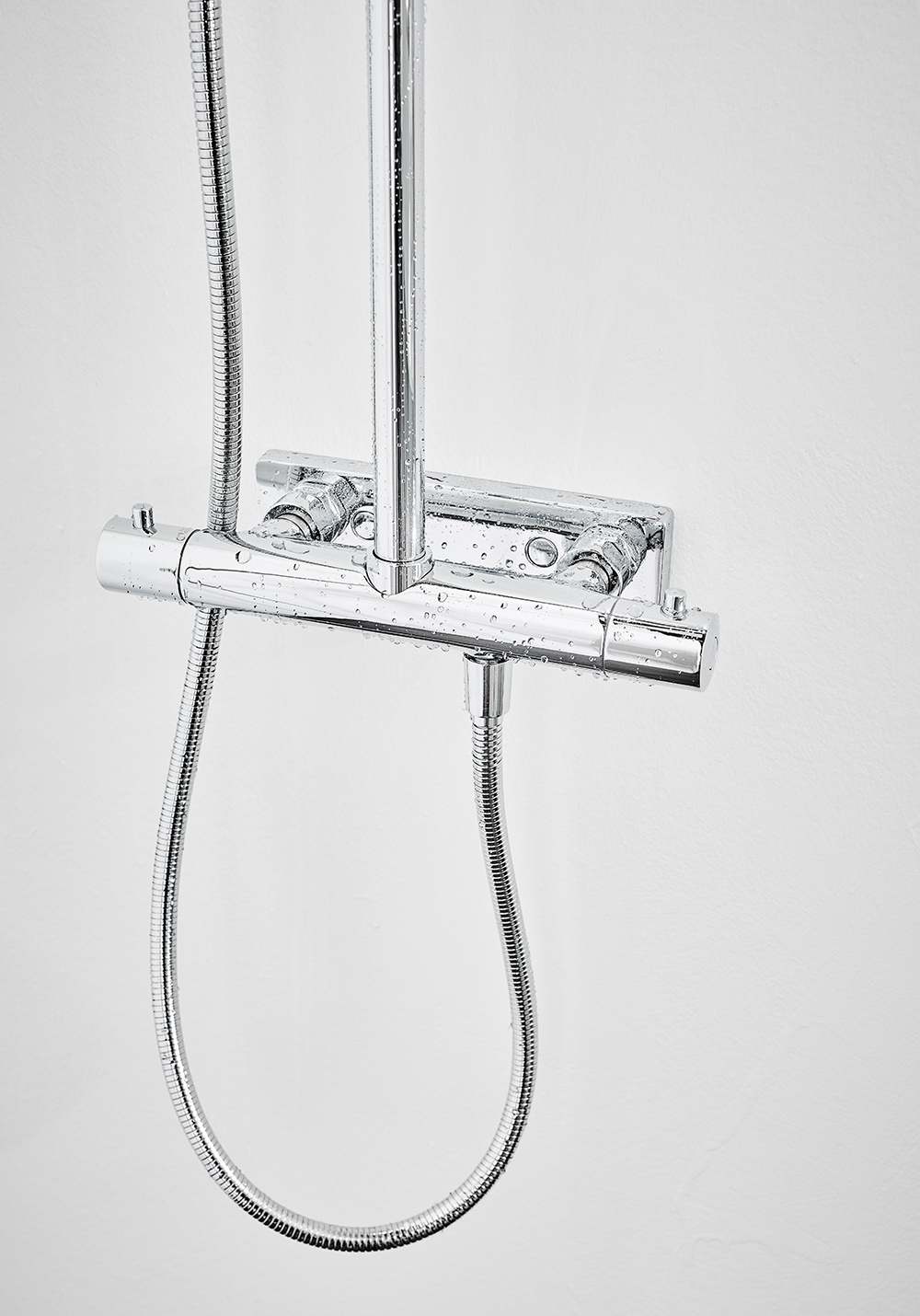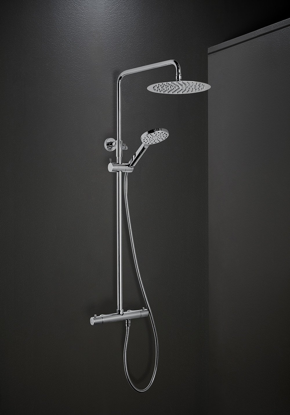 Laadukas kattosuihku kokonaisuus elegantilla suihkulautasella ruostumatonta terästä, Ø200 , Ø250 tai Ø300. Valitse joko kromi, matta musta tai harjattu messinki. Siro messinki termostaattihana lämpötilanrajoittimella sekä HeatProtection-toiminnolla joka estää ulkovaipan kuumenemisen. Suihkutanko teleskooppitoiminnolla. AntiTwist estää suihkuletkun kiertymisen. Käytännöllinen ja tyylikäs käsisuihku ABS. Antikalkki-järjestelmän avulla on kalkki helppo puhdistaa pois suihkulautaselta sekä käsisuihkulta. Water Saven avulla vedenkulutus vähenee.