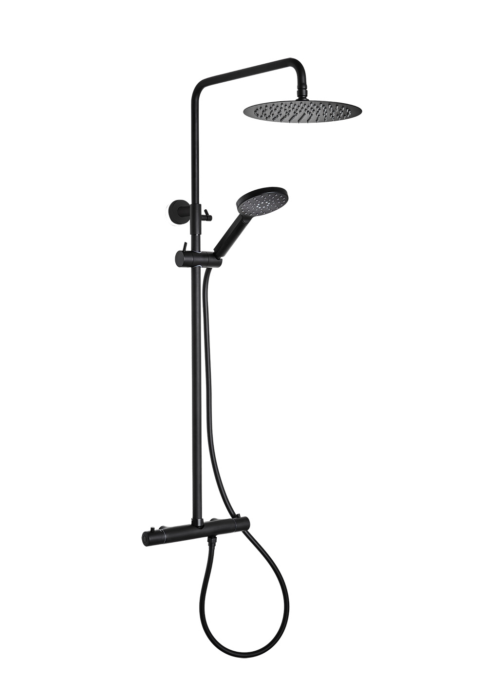 Laadukas kattosuihku kokonaisuus elegantilla suihkulautasella ruostumatonta terästä, Ø200 , Ø250 tai Ø300. Valitse joko kromi, matta musta tai harjattu messinki. Siro messinki termostaattihana lämpötilanrajoittimella sekä HeatProtection-toiminnolla joka estää ulkovaipan kuumenemisen. Suihkutanko teleskooppitoiminnolla. AntiTwist estää suihkuletkun kiertymisen. Käytännöllinen ja tyylikäs käsisuihku ABS. Antikalkki-järjestelmän avulla on kalkki helppo puhdistaa pois suihkulautaselta sekä käsisuihkulta. Water Saven avulla vedenkulutus vähenee.