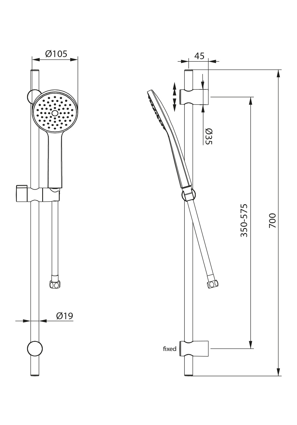 Kätevä ja tyylikäs suihkusetti ruostumattomasta teräksestä valmistetulla suihkutangolla ja AntiTwist-toiminnolla varustetulla suihkuletkulla. Värivaihtoehtoina kromi ja mattamusta. Oteystävällinen siro suihkukahva Water Save -toiminnolla. Suihkutanko, jossa säädettävät seinäkiinnikkeet 350-575 mm. Yhdistä mattamusta suihkusetti uuteen mustaan Mix-suihkuhanaamme