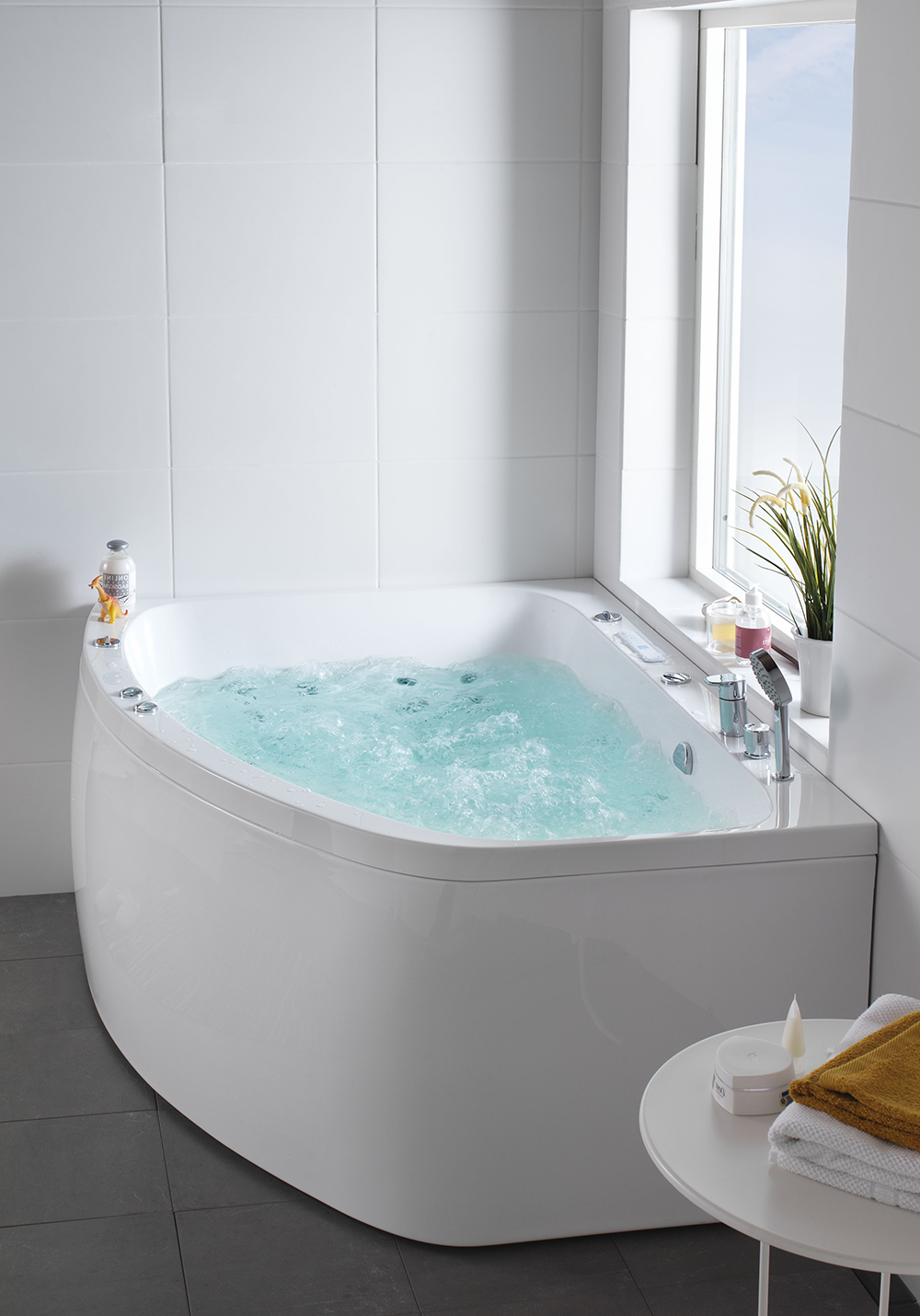 Pieneen tilaan mahtuva fiksu amme kahdelle. Yksiosainen etulevy. Löytyy sekä vasen- että oikeakätisenä.