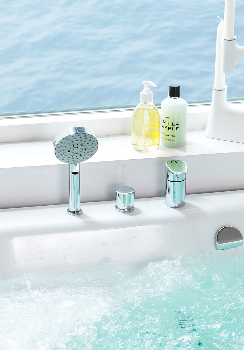 Tehokas pumppu työntää vettä sivusuuttimista kovalla paineella. Tehokas hieronta tekee ihmeitä kiristäville lihaksille ja jäykille nivelille. Suuttimet voidaan suunnata haluttuihin kohtiin.