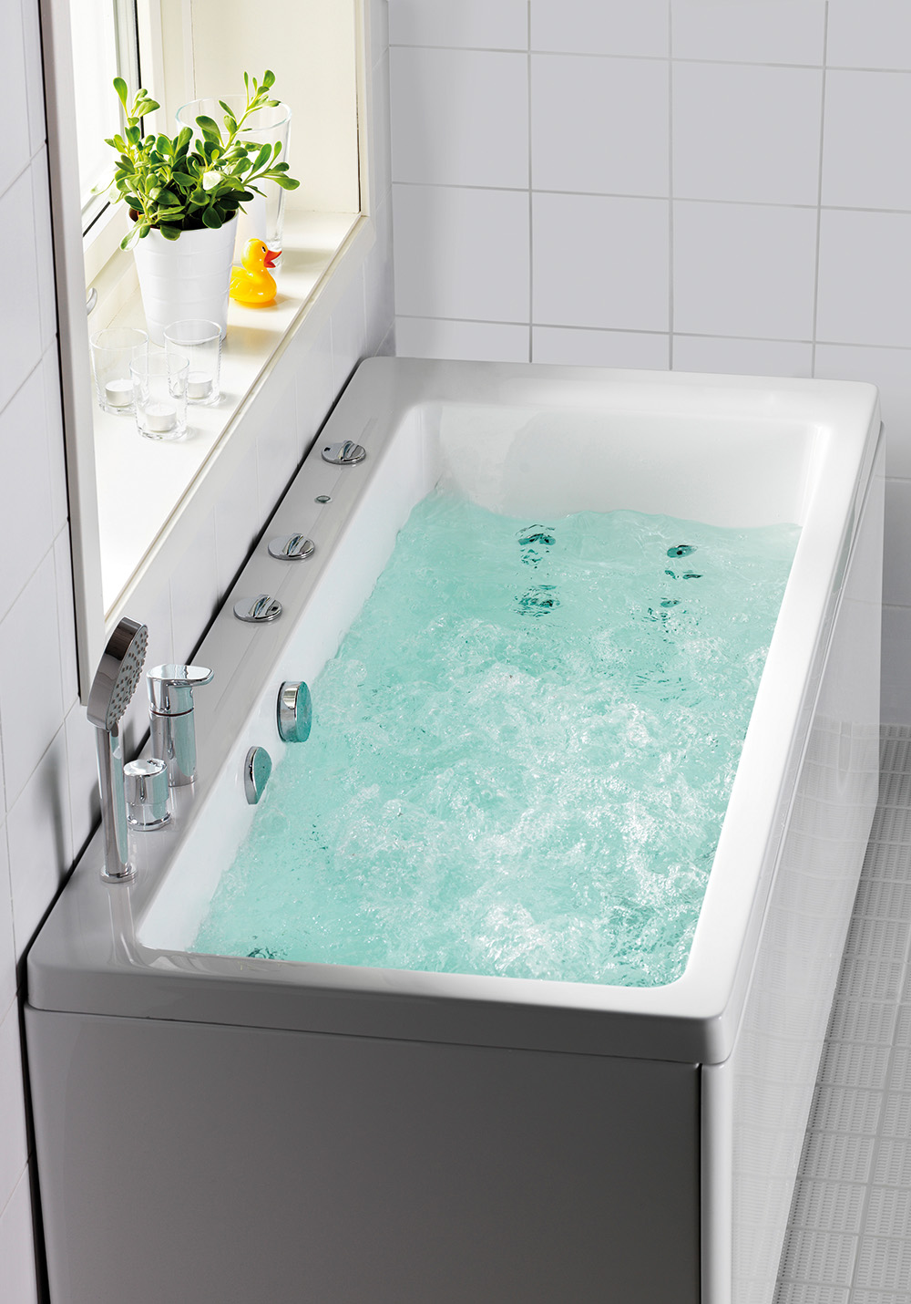 Tehokas pumppu työntää vettä sivusuuttimista kovalla paineella. Tehokas hieronta tekee ihmeitä kiristäville lihaksille ja jäykille nivelille. Suuttimet voidaan suunnata haluttuihin kohtiin.