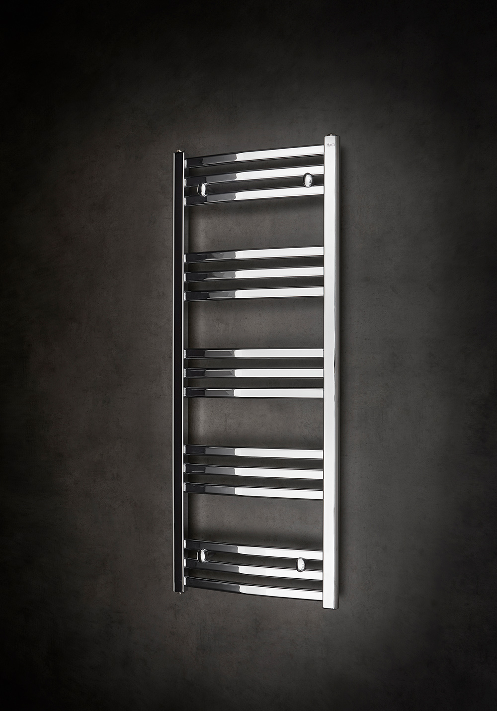 Kromattu nelikulmainen terøsputkesta valmistettu pyyhekuivain. Vesi- tai sähkäliitäntä. Sopii lämmitysverkkoon. Valitse lisävaruste/llitin vaihtoehdon mukaisesti