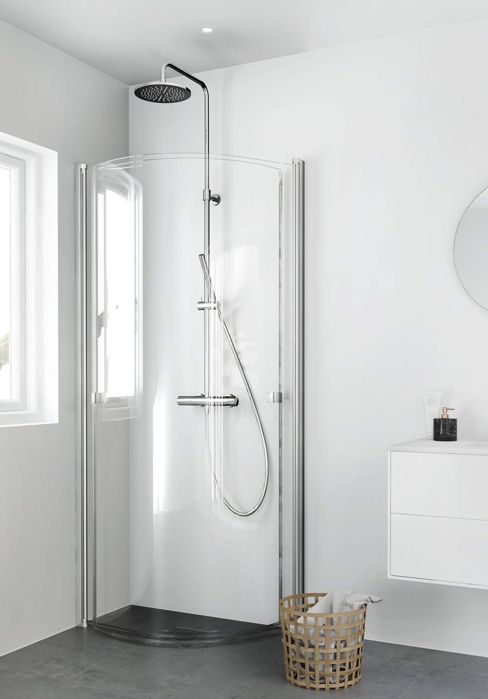 Suihkunurkka joustavilla ratkaisuilla, voidaan asentaa esimerkiksi nurkkaan, ikkunan mukaan tai keskelle seinää. Se on nopea asentaa ja siinä on liimattavat alumiiniprofiilit. Helppo asentaa ja säätää yksin, InstaQuick™. 6 mm karkaistu turvalasi. 8 mm väli lattiaan. Korkeus 2000 mm. Voidaan asentaa 12 mm pintaan asennettavilla putkilla, cc 35 mm. Sisältää 22 mm vetolistan. Katso lisää asennusvaihtoehtoja osoitteesta hafa.fi.